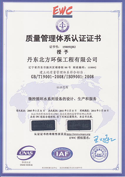 北環(huán)公司質量體系證書