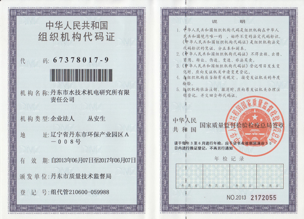 水所組織機構(gòu)代碼證
